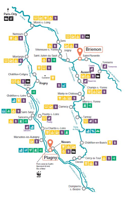 Strecke: Einwegfahrt Plagny – Sancerre – Rogny (118km - 32 Schleusen - 28h00)