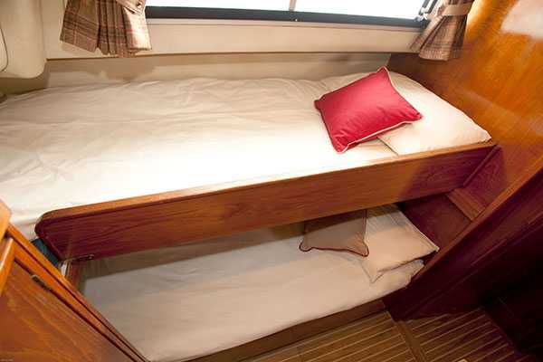 - 1 geräumige Doppelbettkabine im Bug, 1 weitere Doppelbettkabine und 1 Kabine mit 2 Einzelbetten im Heck