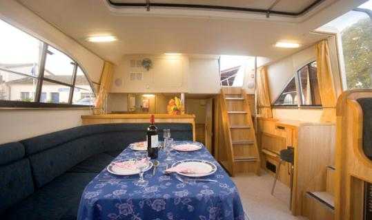 Ein schönes Hausboot welches Komfort und Eleganz angenehm kombiniert. Die grossen Fenster im Salon machen das Boot hell und geräumig.