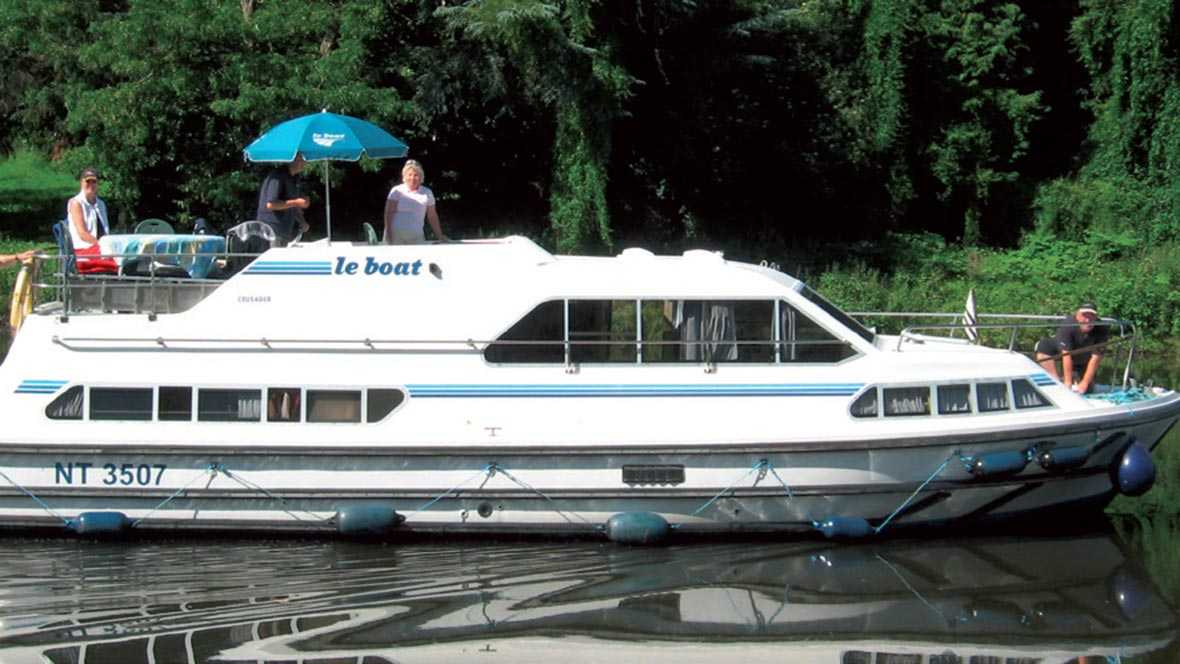 Das gut ausgestattete, 11.90m lange Hausboot Crusader gehört zu den grösseren Modellen der Le Boat Flotte. Dank drei Kabinen mit jeweils eigenem Bad empfiehlt sich das Boot problemlos für 6 Personen.