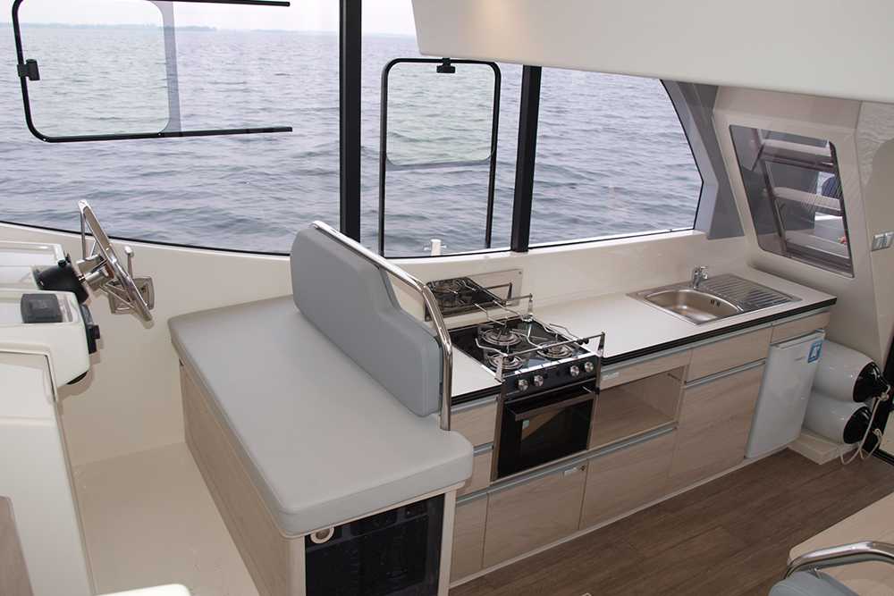 Das grosszügige Sonnendeck ist luxuriös eingerichtet mit fest installiertem Gasgrill, kleinem Kühlschrank, kleinem Lavabo und Bimini (Sonnendach)*. Die Aussenbeleuchtung auf dem Sonnendeck bietet das gewisse Etwas. Das Bug- und Heckstrahlruder, der GPS-Speedsensor sowie die Rudereinschlagsanzeige machen die Navigation der Horizon 2S spielend leicht.