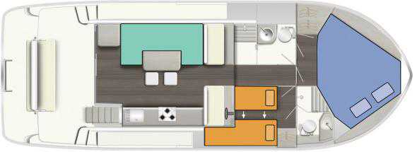 Die Horizon 2S ist gleich gross ist wie das Schwesterschiff Horizon, unterscheidet sich jedoch in der Inneneinrichtung. Die Bugkabine ist etwas kleiner, dafür bietet das Boot eine zusätzliche Nasszelle an, was die Horizon 2S ideal für 2 Paare oder eine kleine Familie macht.