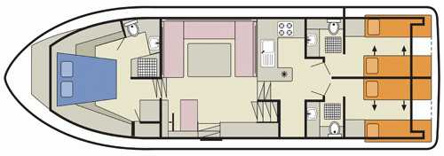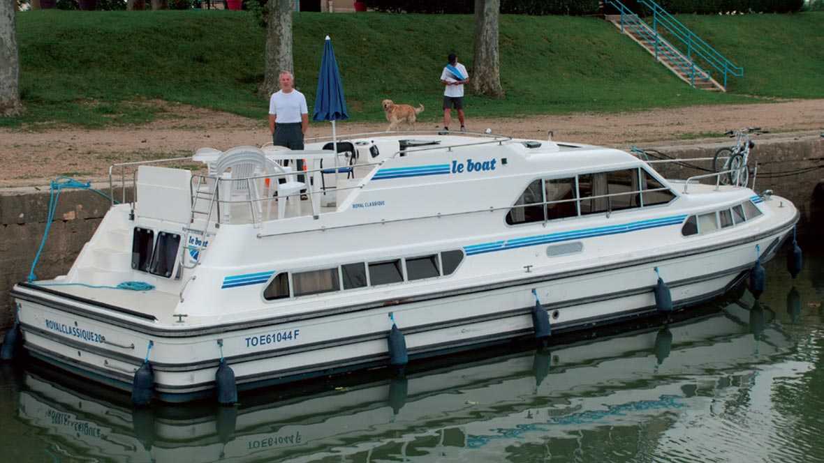 Dieses Komfort-Boot bietet alles, was Sie für angenehme Hausbootferien in einer Gruppe von bis 6 Personen benötigen. Dank dem Bugstrahlruder ist das Manövrieren der Royal Classique ein Kinderspiel. Die drei Kabinen haben alle eine eigene Nasszelle und der grosszügige Aufenthaltsraum mit gepolsteter Sitzecke lädt zu gemütlichen Abenden an Bord ein. Bei schönem Wetter geniessen Sie die Zeit auf dem Sonnendeck, das hinter dem zweiten Steuerstand genügend Platz für Tisch und Stühle bietet.