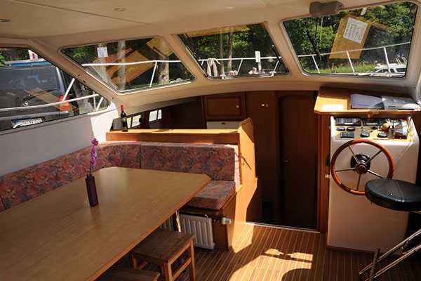 - Sonstiges: Warmwasserheizung in allen Räumen, auch in den Nasszellen, LED Decksbeleuchtung, Echolot, Aussenreeling um das ganze Boot