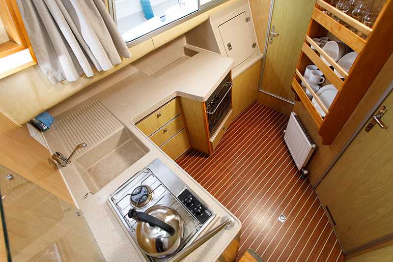- Heck-Kabine mit Doppelbett und eigenem direkten Ausstieg nach aussen, Kleiderablage und Stauraum