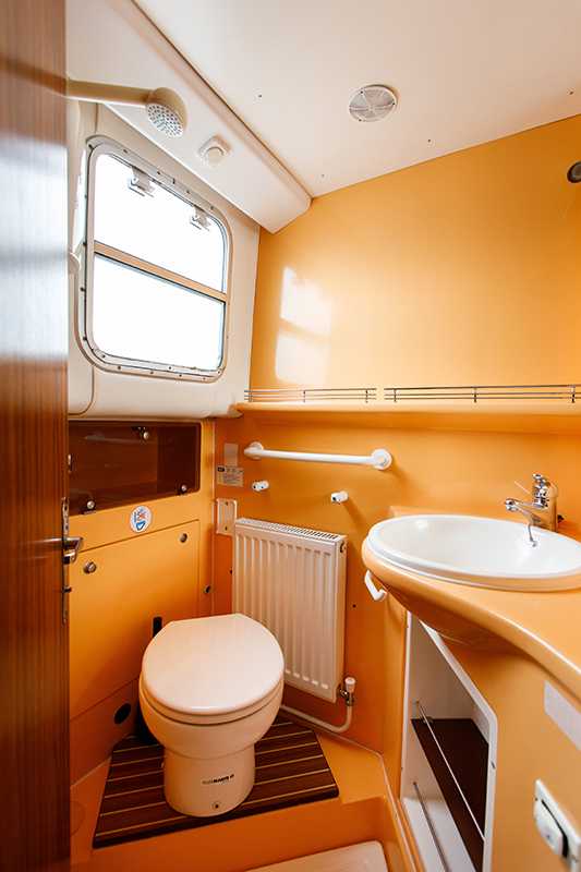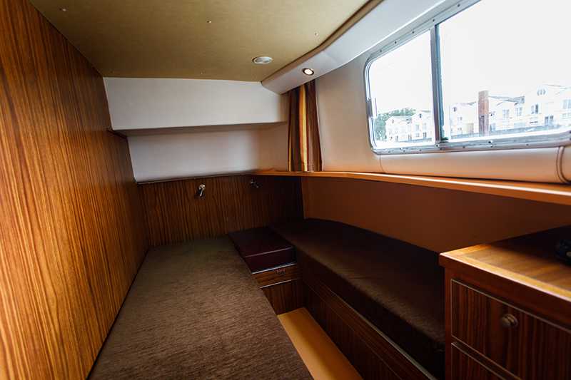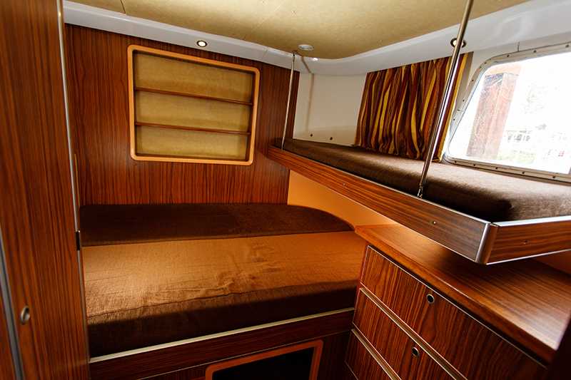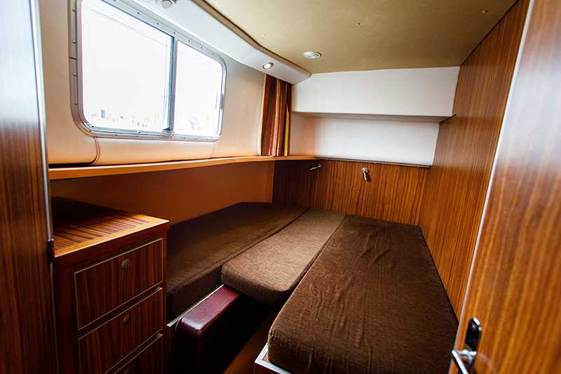 - Heck-Kabine mit Doppelbett (auf Wunsch kann ein Zusatzbett für ein Kind über dem Doppelbett eingehängt werden)