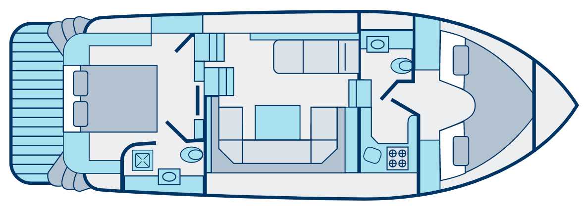 Die Navig 34S hat den gleichen Aufbau wie die Navig 34, jedoch ohne Bugstrahlruder oder Navigbox und ohne Binimi. Perfekt für nostalgische Kapitäne, die lieber ohne Hilfe der modernen Technik steuern. Ideal für 1 Paar mit 2 Kindern oder 2 Paare.