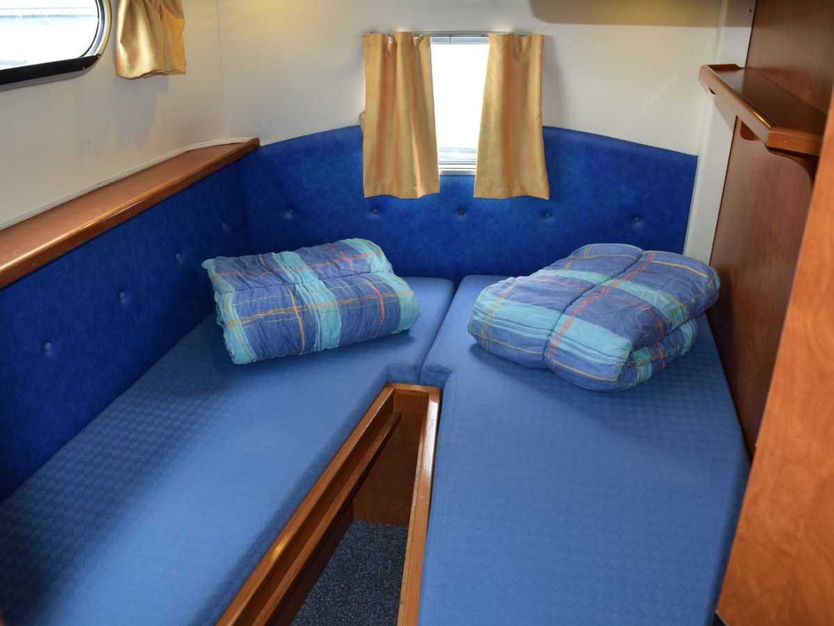 Die Navig 40 ist ein grosses Boot mit komfortablem Innenausbau und einem zweiter Steuerstand. Die Navigation wird erleichtert durch ein Bugstrahlruder und einer Navigbox. Mit 3 Kabinen mit jeweils eigener Nasszelle ist es ideal für 3 Paare oder einer grossen Familie oder Gruppe.