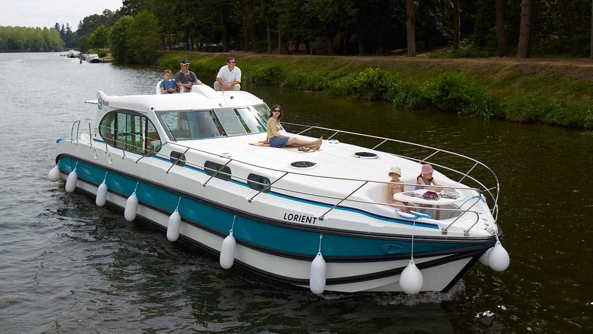 Das moderne und luxuriöse Boot Cruiser Premium+ (4/6) - Nicols Estivale Sixto Prestige C mit Klimaanlage ist ideal für 2 Paare oder eine Familie mit 2 Kindern.