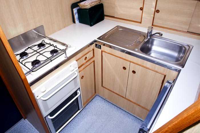 - Nasszelle im hinteren Bereich des Bootes aufgeteilt in WC/Lavabo und separate Dusche