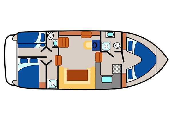 Das moderne Hausboot Silver Swan bietet mit seinen 3 Kabinen bequem Platz für 6 Personen.
