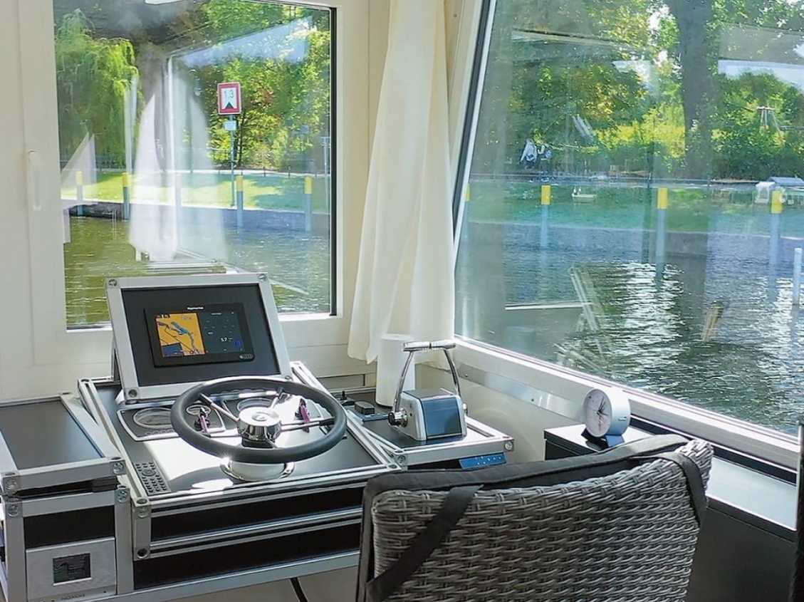 Komfortables Hausboot bis vier Personen (+ zwei Gäste). Mit Salon und Cheminée, sehr heimelig.