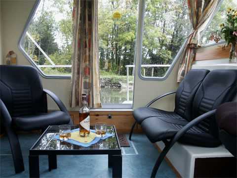 - Salon mit Sessel, Bar, Schreibtisch und Innen-Steuerstand