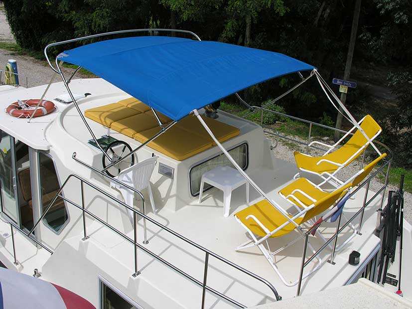 - Zweite Sonnenterasse am Bug des Schiffes mit Tisch und Sitzplätzen