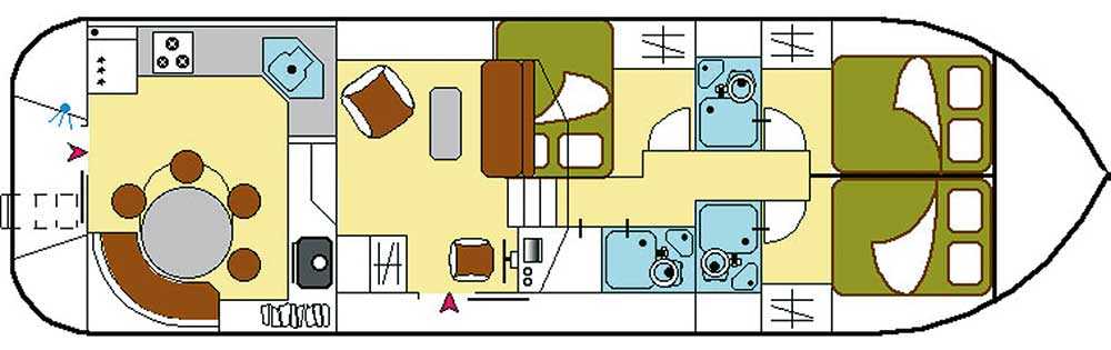 - Kabine mit Doppelbett im unteren mittleren Teil