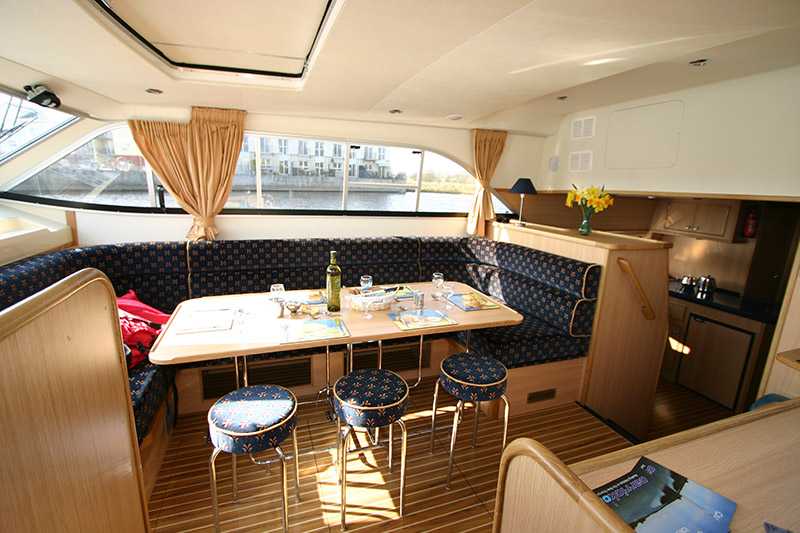 Das komfortable, sehr geräumige Hausboot Roscommon bietet innen und aussen angenehm Platz für 10 Personen.
