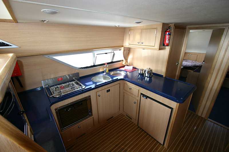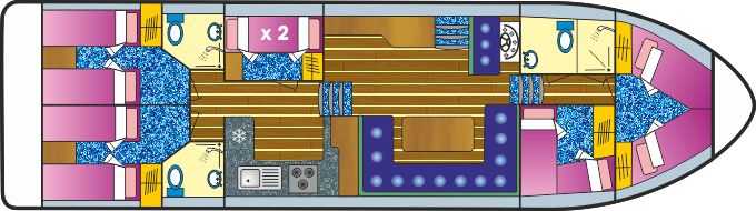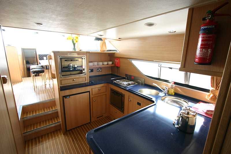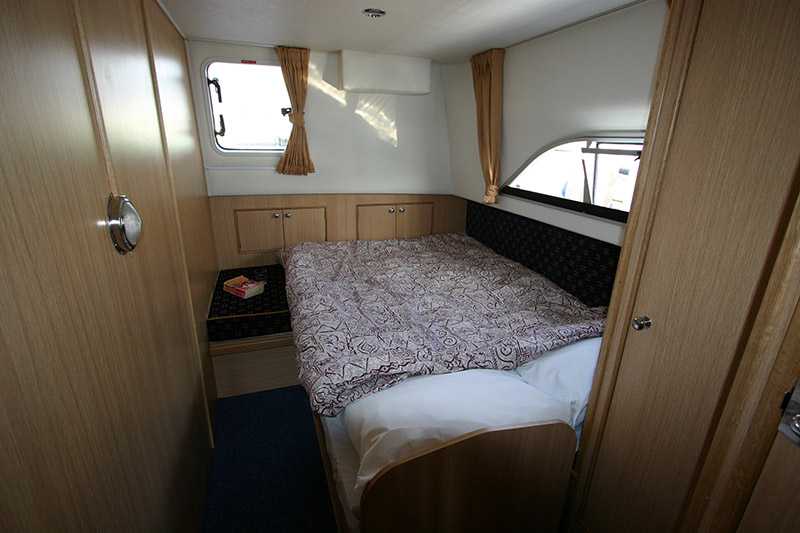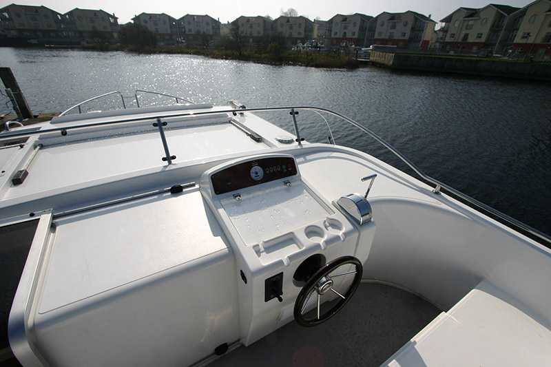 Es überzeugt mit einer grosszügigen Küche mit zwei Öfen und auch sehr viel Platz auf dem Oberdeck mit zwei Sitzbereichen. Innen- und Aussenführerstand bieten eine gute Übersicht. Die Roscommon ist mit einem DVD-Spieler, 220V Stromversorgung sowie einem haushaltsüblichen Haarfön ausgestattet. Bitte beachten Sie, dass für dieses Boot eine Minimalbesatzung von drei Erwachsenen notwendig ist.