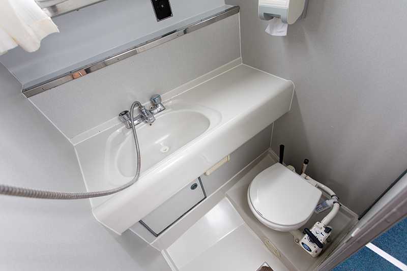 - Bugkabine mit zwei Einzelbetten, umbaubar in ein grosses Doppelbett